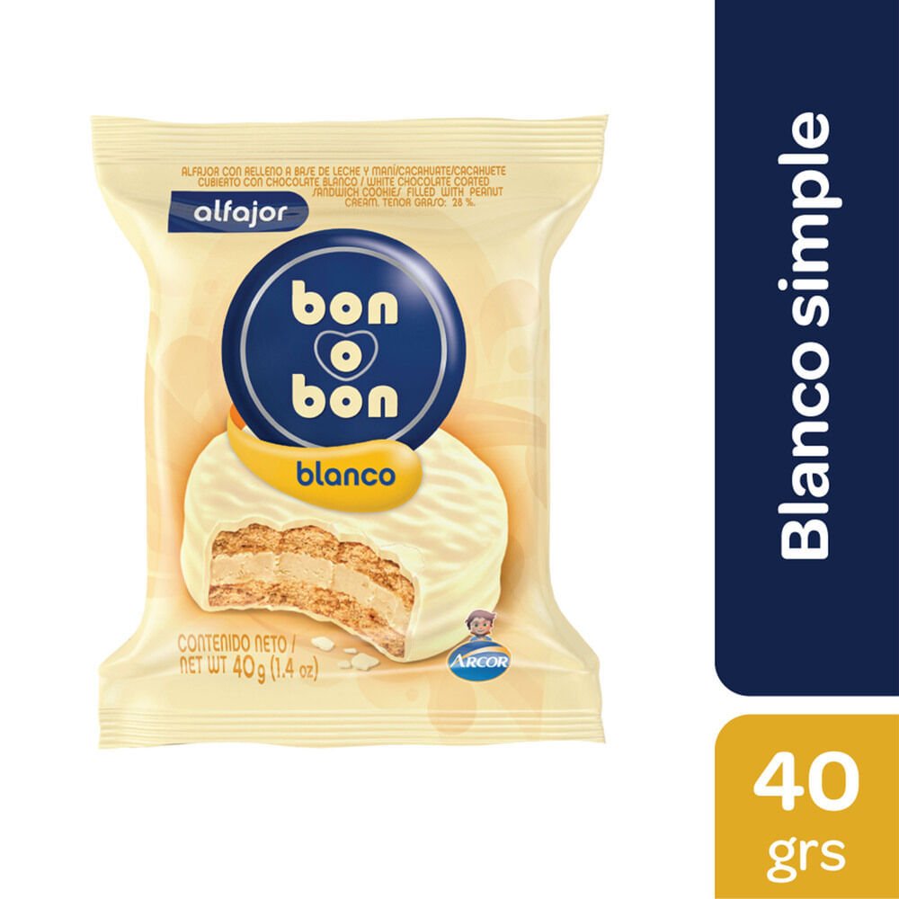 ALFAJOR BON O BON BLANCO SIMPLE